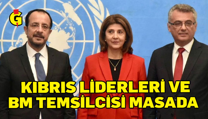 Cumhurbaşkanı Tufan Erhürman ve Rum Yönetimi Başkanı Nikos Hristodulidis ile BM Genel Sekreteri’nin Kişisel Temsilcisi Maria Angela Holguin Cuellar görüşüyor.