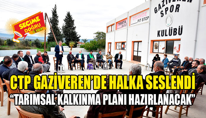 Cumhuriyetçi Türk Partisi (CTP) Genel Başkanı Tufan Erhürman, pandemi ile önemi daha da artan tarım sektörüne yönelik, sürdürülebilir Tarımsal Kalkınma Planı hazırlanacağını vurguladı. Erhürman, planın hastalıklara dayanıklı, verimli ve rekabet edebilirliği yüksek üretim için günümüz koşullarına uygun olacağına işaret etti. CTP Lideri Erhürman ve milletvekili adayları Gaziveren Kulüp binasında bölge halkına seslendi. Gaziveren halkının sorunlarını dinleyen CTP heyeti, çözüm önerilerini de paylaştı.