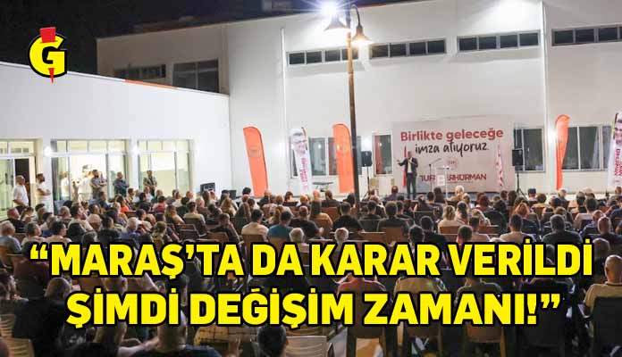Cumhuriyetçi Türk Partisi (CTP) Genel Başkanı ve Cumhurbaşkanı adayı Tufan Erhürman, yoğun katılımla gerçekleştirilen Maraş Halk Buluşmasında konuştu ve “Maraş’ta da karar verildi, şimdi değişim zamanı” ifadelerini kullandı.