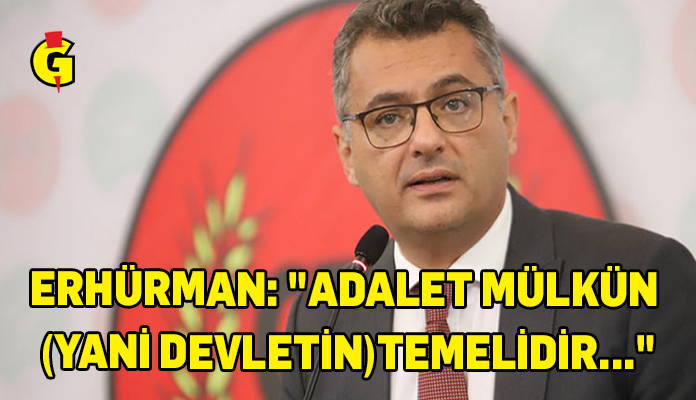 Erhürman, “Adalet Tanrıçası’nın bir elinde kılıç, diğerinde terazi var. Gözleri de bir gözbağı ile kapatılmış. Sahi, neden bir gözbağı ile kapatılmıştı Adalet Tanrıçası’nın gözleri? Tarafsız olsun diye! Kimsenin kimliğinden, sosyal ve siyasi statüsünden etkilenmesin diye! Gözlerini açarsanız, kılıç da, terazi de yitirir anlamını. O vakit adalet tartışmalı hale gelir ki bir halk, bir devlet için olabileceklerin en kötüsüdür! Çünkü adalet mülkün (yani devletin) temelidir…” ifadelerini kullandı.