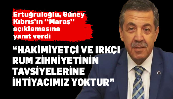 Dışişleri Bakanı Tahsin Ertuğruloğlu, Güney Kıbrıs Rum Yönetimi Dışişleri Bakanı Yannis Kasulidis’in Maraş konusundaki açıklamalarına yanıt vererek “Hakimiyetçi ve ırkçı Rum zihniyetinin tavsiyelerine ihtiyacımız yoktur” dedi.