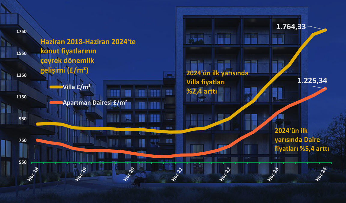 Kuzey Kıbrıs’ta konut fiyatlarının “Sterlin” bazındaki sert yükselişi hız kesmeden sürüyor. Aralık 2020’den Haziran 2024’e kadar olan 42 aylık süreçte kesintisiz artan konut fiyatları, Kuzey Kıbrıs’ı konut fiyatlarında en pahalı ülkeler listesine çoktan soktu. Yapılan hesaplamaya göre Nisan-Haziran 2024 döneminde aparman dairesi fiyatları %5.42 oranında; villa ve müstakil ev fiyatları ise %2.41 oranında arttı. Piyasa verilerine göre, Güney Kıbrıs’ın kuzeydeki inşaat faaliyetlerine yönelik olarak başlattığı “insan avı”, ev fiyatlarını korkutamadı.