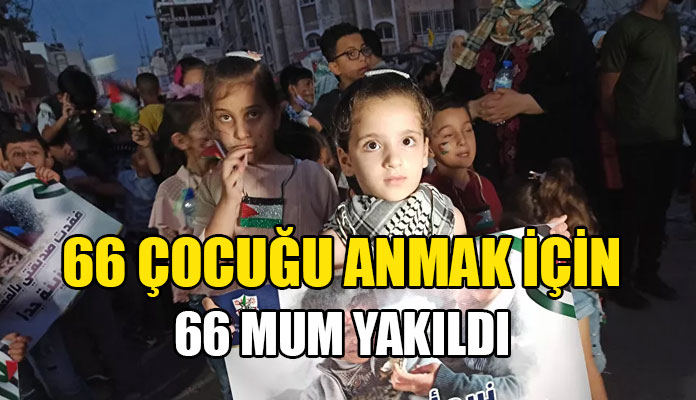 Filistin’in Gazze Şeridi bölgesine yönelik 10 Mayıs’ta başlayan İsrail saldırıları, 21 Mayıs’ta İsrail ve Hamas arasında varılan ateşkesin ardından sona ermişti. Saldırılarda, 66’sı çocuk, 39’u kadın olmak üzere 254 kişi hayatını kaybetmiş, bin 948 kişi de yaralanmıştı. El Fetih – Demokratik Reform Bloğu tarafından Gazze’de düzenlenen anma etkinliğine katılan onlarca Filistinli çocuk, İsrail saldırılarında hayatını kaybeden 66 çocuğu anmak için 66 mum yaktı.