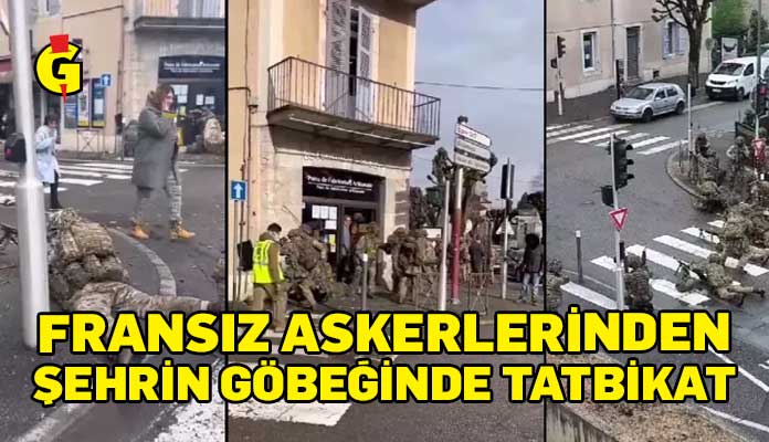 Twitter’da yer alan videolarda, güneydeki Cahors kentinde yayalar ile araç geçişleri arasında savaş sahnesi canlandırdığı görüldü. Cadde ortasında üniformalarıyla ilerleyen, mevziler açan ve ellerindeki kurusıkı silahları ateşleyen askerlerin, sözde düşmana uzattığı namlularının ucundan kent sakinlerinin aldırış etmeden geçmesi dikkati çekiyor.