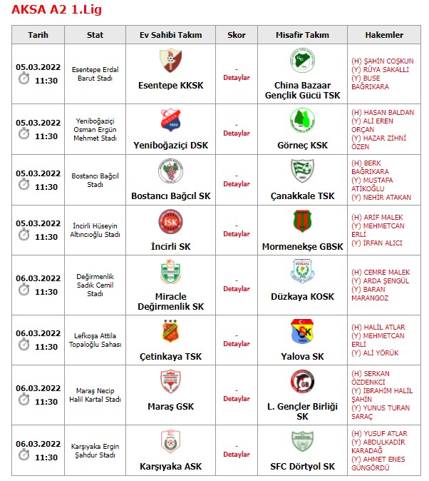 Kıbrıs Türk Futbol Federasyonu (KTFF) tarafından organize edilen AKSA Süper Lig, AKSA 1.Lig ve AKSA A2 Ligleri’nde 21.hafta programı belli oldu.