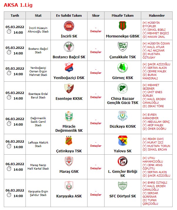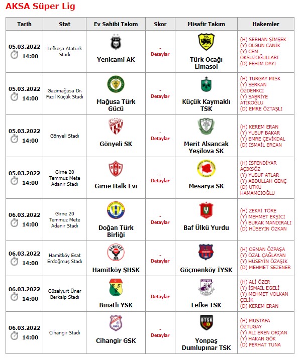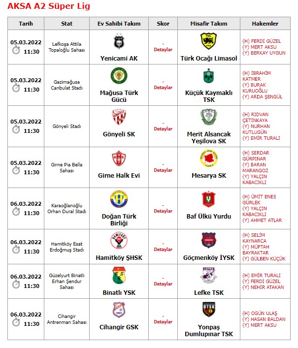 Kıbrıs Türk Futbol Federasyonu (KTFF) tarafından organize edilen AKSA Süper Lig, AKSA 1.Lig ve AKSA A2 Ligleri’nde 21.hafta programı belli oldu.