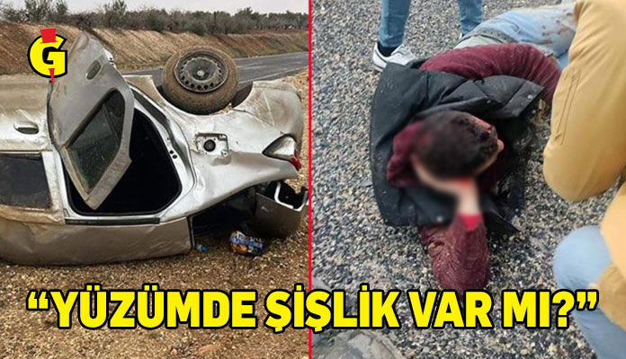 Gaziantep’te devrilen araçta yaralanan sürücü tek bir şeyi merak etti: Yüzümde şişlik var mı?