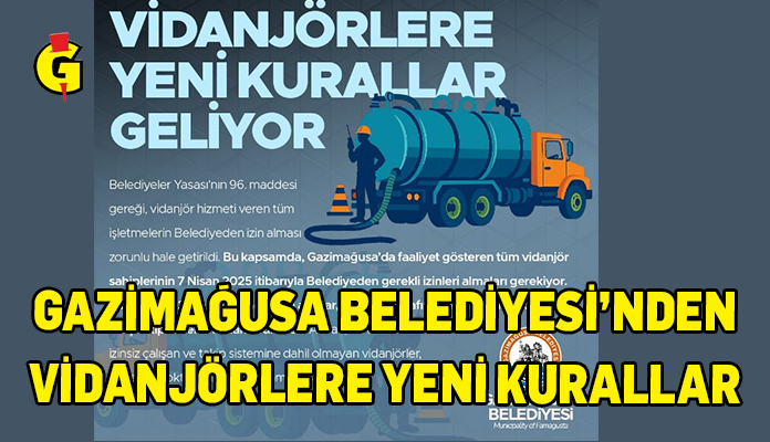 Gazimağusa Belediyesi, çevre ve halk sağlığını korumak amacıyla vidanjör boşaltım noktalarına erişimin 7 Nisan’dan itibaren denetim altına alınacağını açıkladı. Yeni uygulama ile izinsiz ve denetimsiz deşarjların önüne geçilecek.