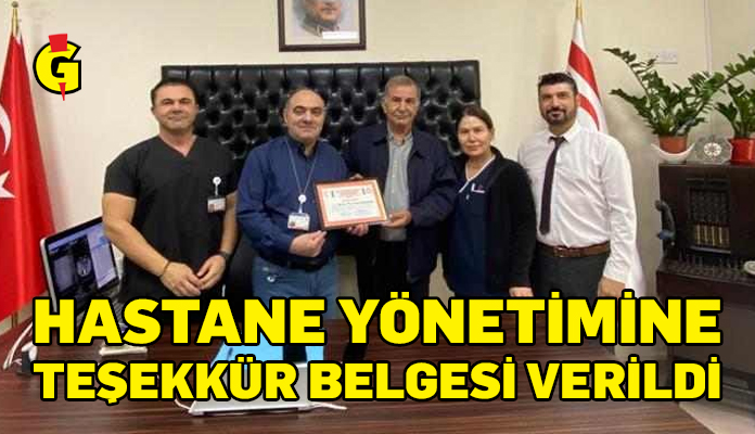 Ruh sağlığını koruma ve ruh hastalarına yardım derneği başkanı psikolog Dr. İbrahim Alçıner, üyelerinin Gazimağusa devlet hastanesinden aldıkları iyi hizmetlerden dolayı yönetim kurulu olarak Hastane başhekimi Dr. Mustafa Kalfaoğlu baş amiri Mustafa Yaver ile idare amiri Hüseyin karcı doktorlar hemşireler ve tüm personele teşekkürleri sunmak için dernek adına teşekkür belgesini takdim etti.