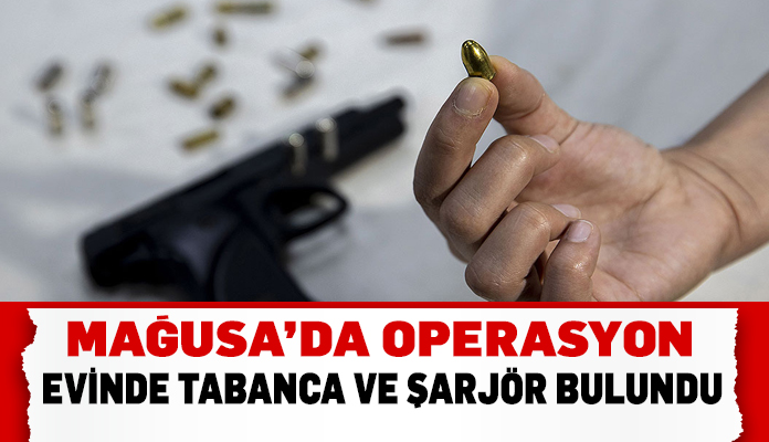 Gazimağusa’da 37 yaşındaki A.A’nın evinde yapılan aramada tabanca ve 2 adet şarjör bulundu.