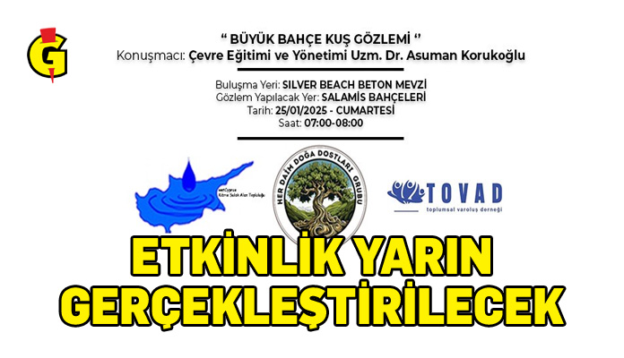 Her Daim Doğa Dostları, Kıbrıs Sulak Alan Topluluğu ve Toplumsal Varoluş Derneği’nin birlikte organize ettiği “Büyük Bahçe Kuş Gözlemi” (Big Garden Birdwatch) etkinliği yarın gerçekleştirilecek.