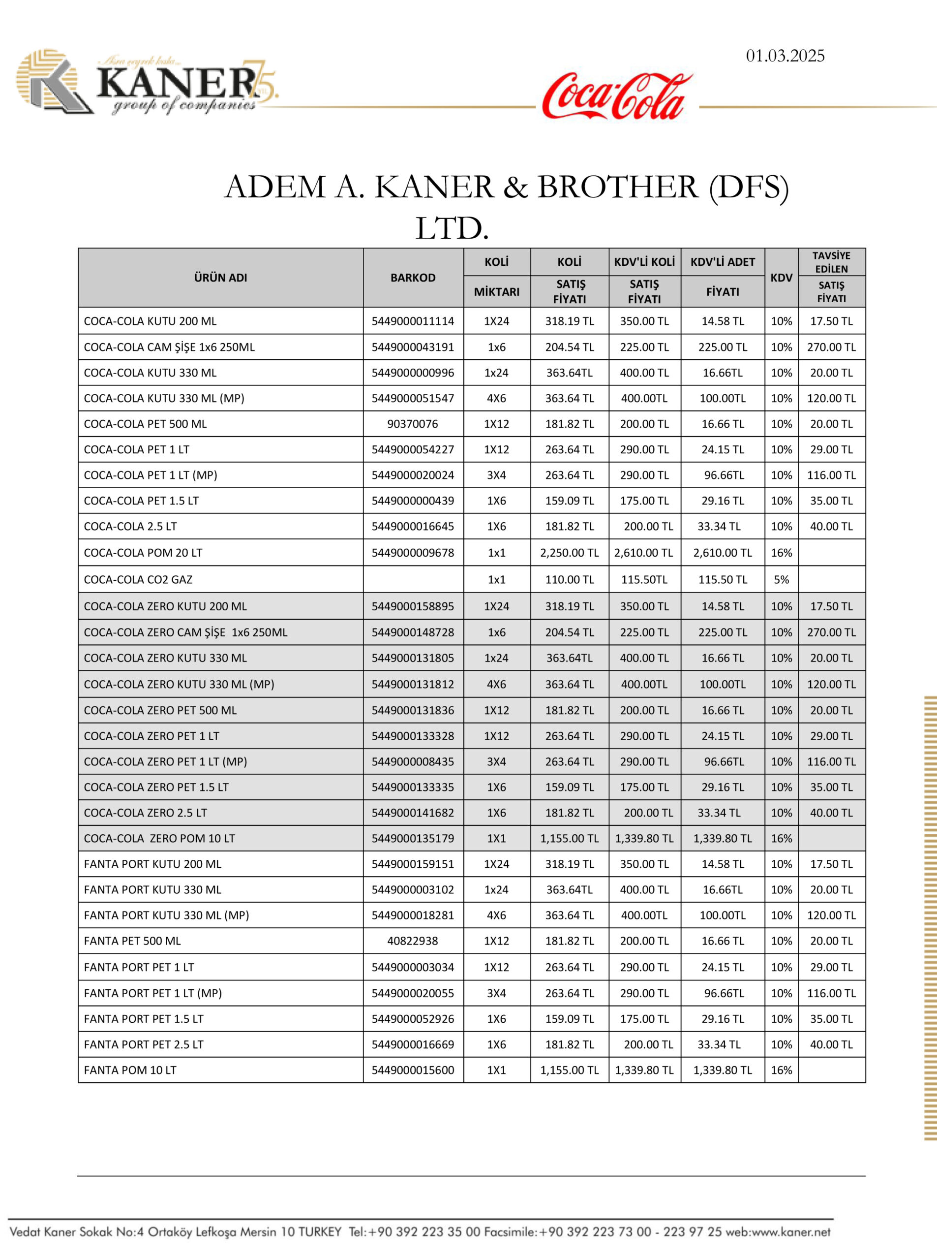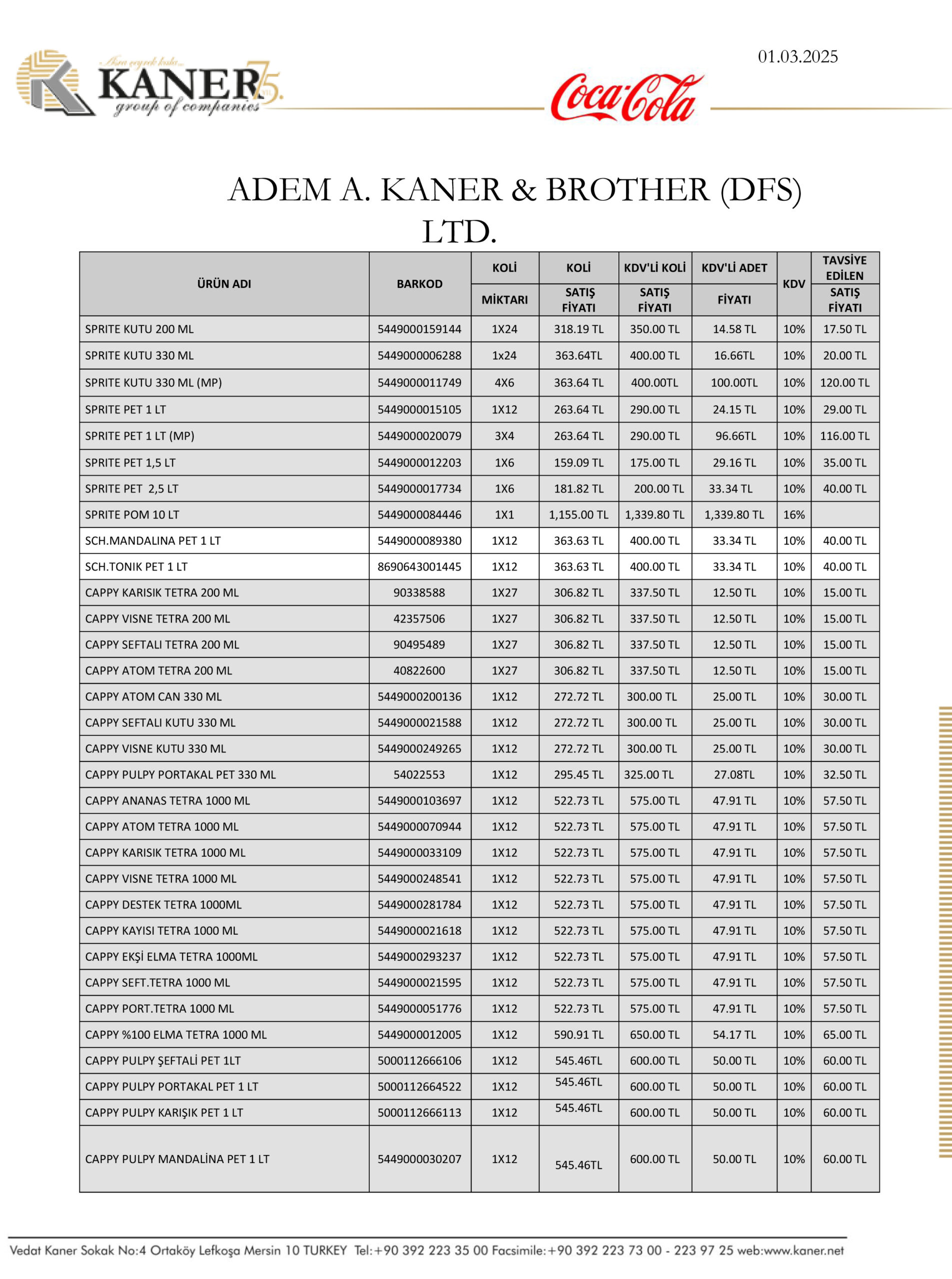 Cappy meyve suyu 45 TL’den 57.50 TL’ye, teneke meyve suyu 19 TL’den 22.50 TL’ye çıktı.Küçük boy Damla Su da 10 TL’den 12 TL’ye yükseldi.