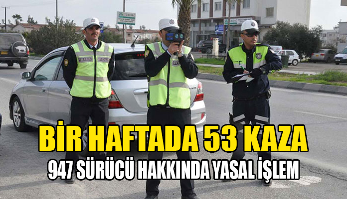 KKTC’de geçen hafta, 53 trafik kazası meydana geldi; 15’ i yaralanma, 38’i hasarla sonuçlanan bu kazalarda 22 kişi yaralandı.