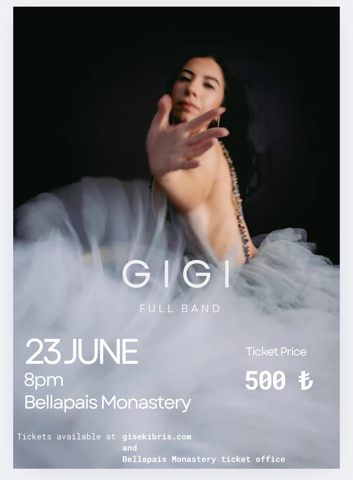 Büyüleyici atmosfere sahip tarihi Bellapais Manastırı, 23 Haziran Pazar akşamı saat 20.00’de GİGİ ve grubunu ağırlamaya hazırlanıyor. “Full Band” konseptiyle sahne alacak olan sanatçı, dinleyicilere unutulmaz bir müzik deneyimi yaşatacak.