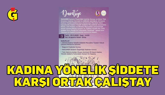 GİKAD’tan verilen bilgiye göre, kadına yönelik şiddete dikkat çekmek amacıyla 21–23 Kasım tarihleri arasında Acapulco Hotel’de gerçekleştirilecek program kapsamında iki ayrı çalıştay düzenlenecek.