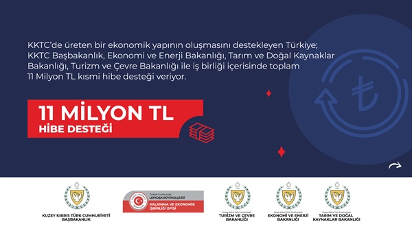 Türkiye, KKTC’de sanayi, tarım, turizm ve girişimcilik alanında 11 milyon TL kısmi hibe verecek.