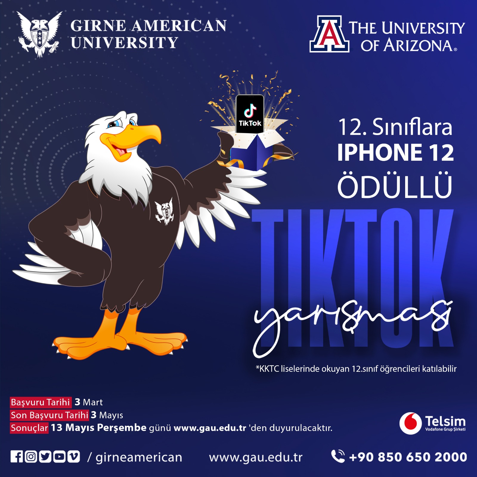 Girne Amerikan Üniversitesi’nin düzenlediği ve iletişim sponsorluğunu üstlendiğimiz iPhone 12 ödüllü TikTok yarışmasına katılımlar devam ediyor. KKTC liselerinde okuyan tüm 12. sınıf öğrencilerinin katılabileceği yarışmaya son katılım tarihi 3 Mayıs. Başvurmak için tıklayın: https://cutt.ly/PvjmUwo SMS iptali icin GAU yazip 6110’a gonderin
