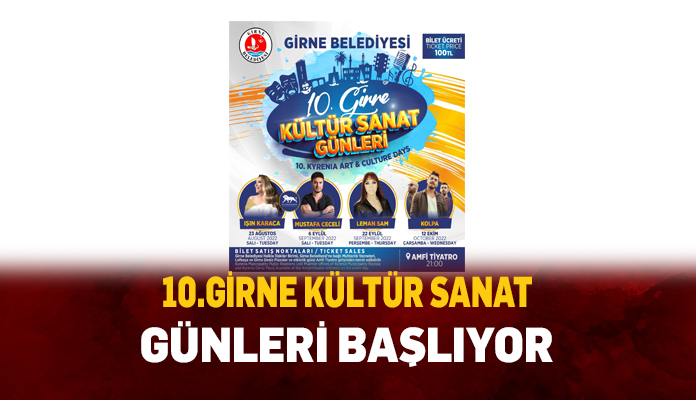 Girne Belediyesi’nin bu yıl 10’uncusunu gerçekleştireceği Girne Kültür Sanat Günleri, 23 Ağustos Salı akşamı Işın Karaca konseriyle başlıyor.
