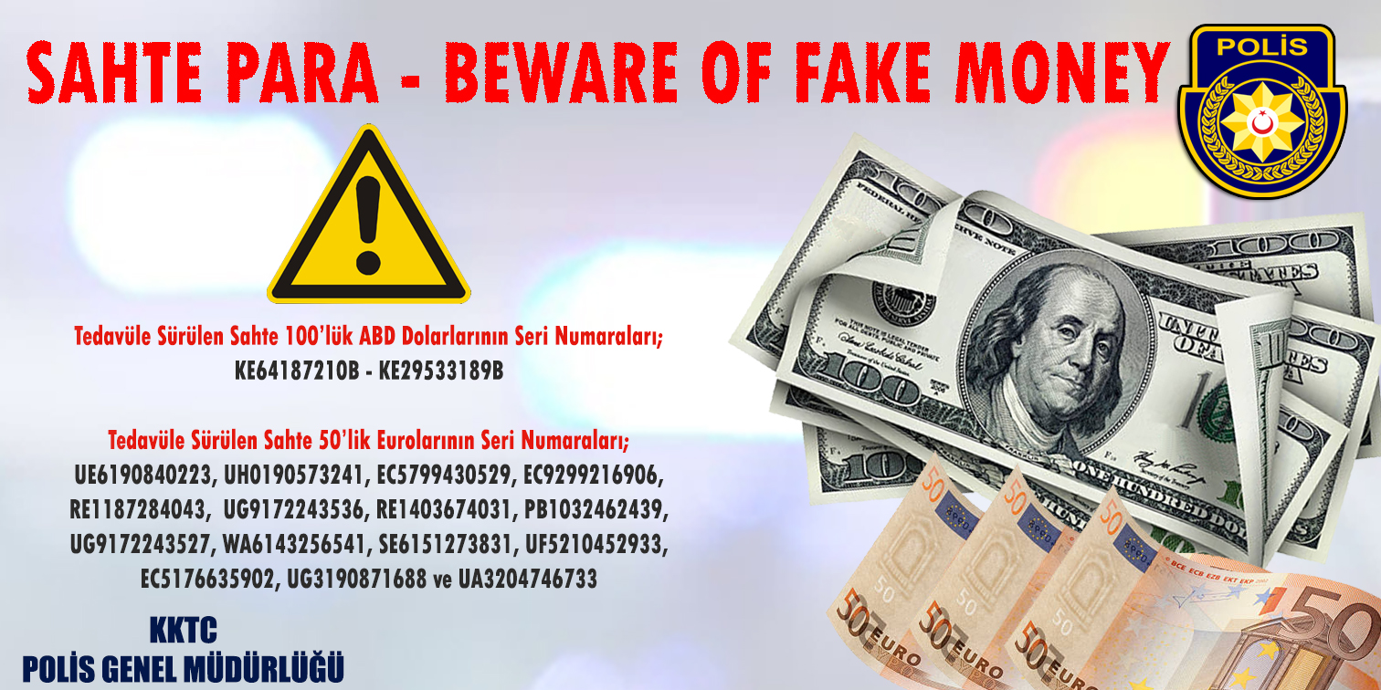 Polis, Girne’de bir kumarhanede sahte ABD Doları ve euro’nun tedavüle sürüldüğünün tespit edildiğini duyurdu. Polis, sahte paralarla ilgili uyarıda bulundu.