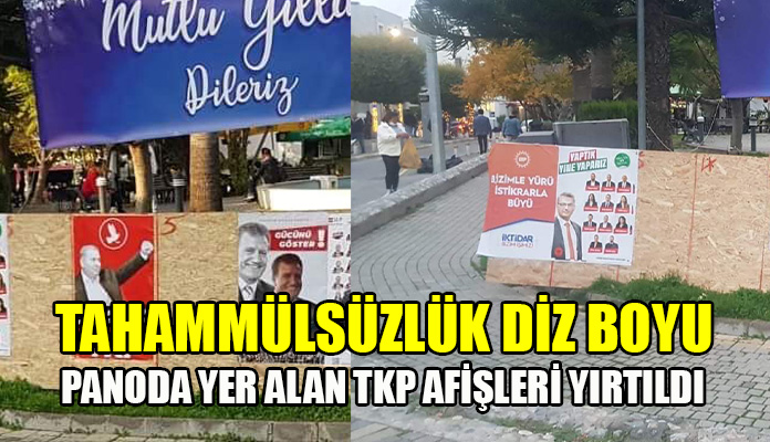 Toplumcu Kurtuluş Partisi’nin Mağusa ilçesi ve Mehmetçik bölgesinde yer alan seçim panolarındaki TKP afişlerinden sonra TKP Yeni Güçlerin Girne’de Ramadan Camil Meydanındaki (eski belediye binası önü) afişleri de birileri tarafında yırtılarak tamamen yerinden söküldü.