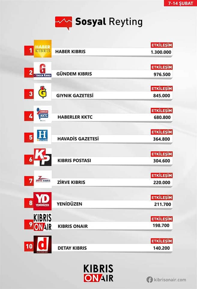 Geride bıraktığımız haftada, özellikle firari mahkum Alexander Satlaev’in arama çalışmalarını anbean takip eden GIYNIK ekibi, emeğinin karşılığını siz değerli okuyucularımızın sosyal medyadaki geri dönüşleriyle aldı. Ülkenin gündemini meşgul eden firari mahkum olurken, ülkemiz gündemi GIYNIK Gazetesi’nden takip etti. ‘Kıbrıs Onair.com’ tarafından haftalık olarak yayınlanan sosyal medya reytinglerinde GIYNIK Gazetesi, kırılması zor bir rekora ulaştı.
