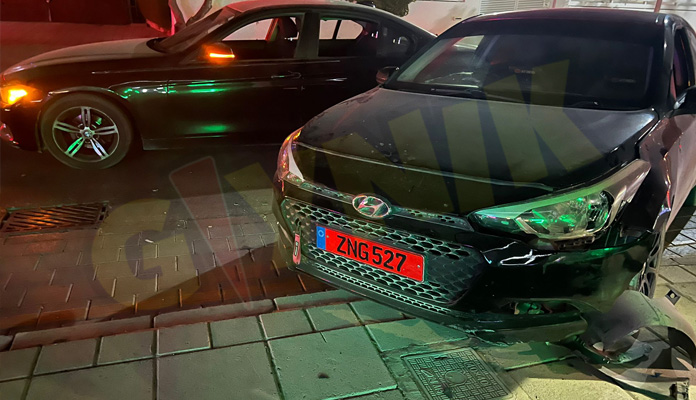 Gönyeli Belediye Bulvarı Poyraz Sokak üzerinde seyreden siyah renkli BMW önündeki aracın ani fren yapması sonucu, arkadan gelen kiralık araç sürücüsü BMW’ye çarpmamak için direksiyonu ters yöne kırdı.