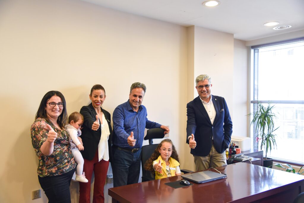 23 Nisan Ulusal Egemenlik ve Çocuk Bayramı’nda Grand Pasha Nicosia Hotel’de Genel Müdür koltuğunu Eylül Özbilen’den devralan Nevşin Alkan tüm departmanları ziyaret ederek oteli teftiş etti. Teftiş sonrasında Grand Pasha Hoteller Genel Koordinatörü Mustafa Alparslan, Genel Müdür Eylül Özbilen ve ailesi ile birlikte makam koltuğunda turizmci selamı veren Nevşin, gelecek için Mustafa Kemal Atatürk’ün izinden gideceğini vurguladı.