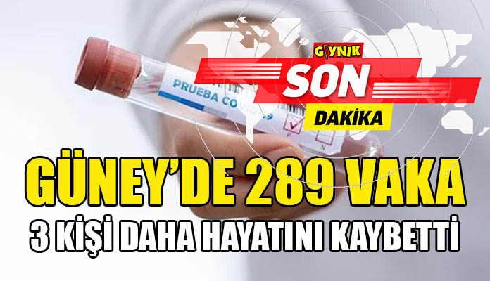 Güney’de 289 yeni vaka tespit edilirken 3 kişi de hayatını kaybetti