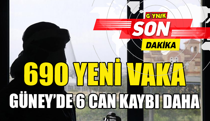 Kıbrıs Rum Sağlık Bakanlığı'ndan yapılan açıklamaya göre, Kıbrıs'ın güneyinde son 24 saatte yapılan 50 bin 902 test sonucunda 690 yeni pozitif vaka tespit edildi. Güney Kıbrıs'ta son 24 saatte 6 covid-19 hastası daha hayatını kaybetti