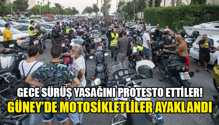 Rum polisinin, belirli saatlerde (gece) ve bölgelerde sürüş yapmalarını yasakladığı binlerce Rum motosikletli dün Güney Kıbrıs kentlerinde protesto sürüşü yaptı