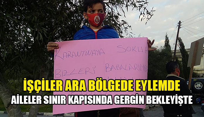 Güney Kıbrıs’ta çalışan işçiler, Metehan Sınır Kapısı’nda eylem yapıyor. Evlerine gitme kararı çıkmadığı sürece ara bölgede kalacaklarını duyuran işçilerin eylemine aileleri de sınır kapısının kuzey kısmından destek veriyor.