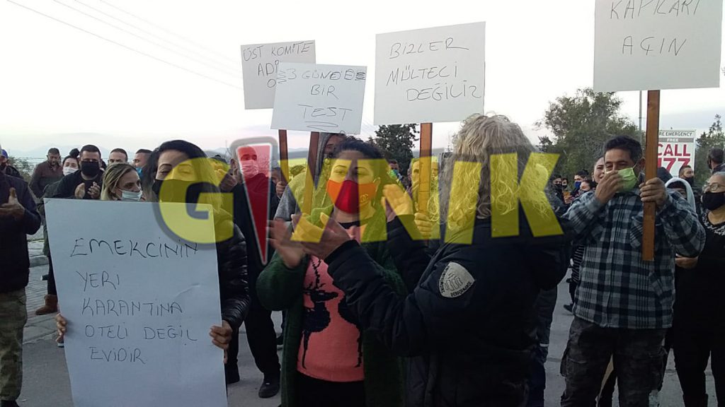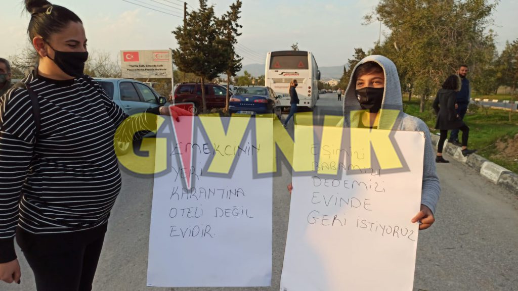 Güneyde çalışan işçiler karantinaya gitmek istemedikleri gerekçesiyle şu sıralar Kermiya geçiş noktasında eylem gerçekleştiriyor. İş çıkışı pankartlarla barikata gelen işçiler, karantinaya otellerine gitmek istemiyor. Gerçekleşen eyleme aileler de ellerindeki pankartlarla destek veriyor.