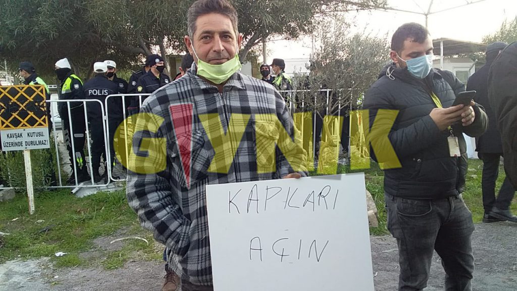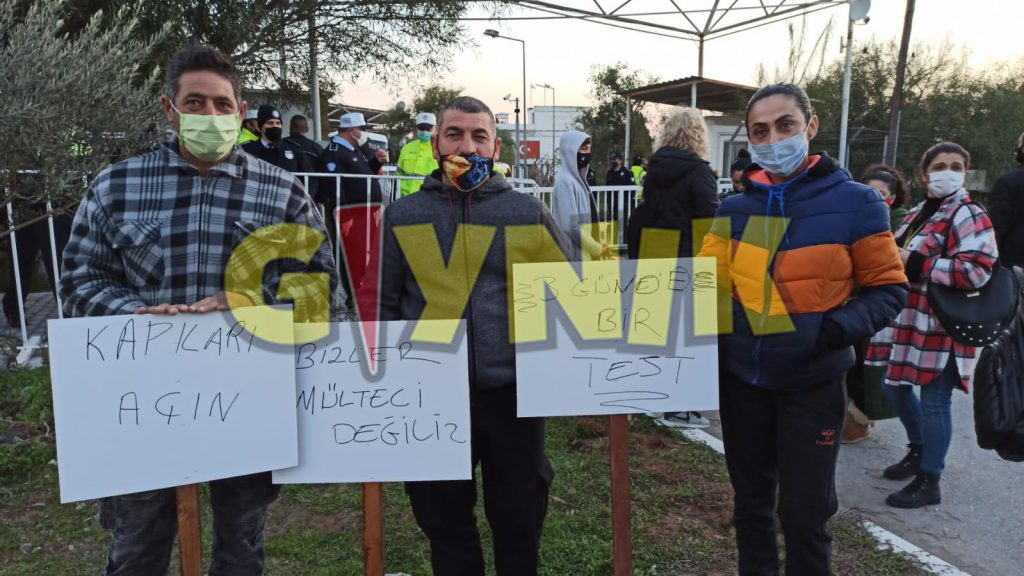 Güney Kıbrıs’ta çalışan işçiler, Metehan Sınır Kapısı’nda eylem yapıyor. Evlerine gitme kararı çıkmadığı sürece ara bölgede kalacaklarını duyuran işçilerin eylemine aileleri de sınır kapısının kuzey kısmından destek veriyor.