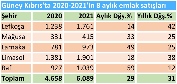 2020’ye göre ciddi artış gösteren emlak satışları yine de hala 2019 rakamlarının uzağında. Güney’de koronavirüs nedeniyle emlak satışlarında düşüşler yaşanırken, yatırım yoluyla (özellikle emlak yatırımı) vatandaşlık uygulamasındaki skandalın El Cezire tarafından ifşa edilmesiyle iyice kötüleşmişti.
