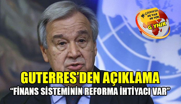 Birleşmiş Milletler (BM) Genel Sekreteri Antonio Guterres, eşitsizlikleri ve istikrarsızlığı artıran mevcut küresel finansal sistemin reforma ihtiyacı olduğunu söyledi.