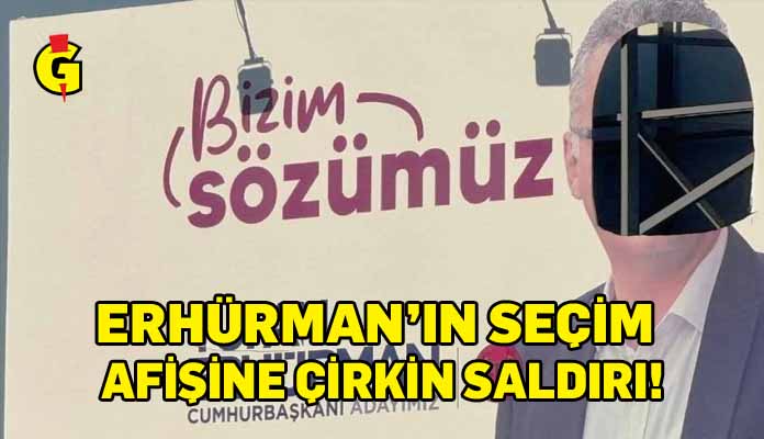 “Bizim Sözümüz” sloganının yer aldığı afişin yüz kısmının kesilerek yırtıldığı görüldü.