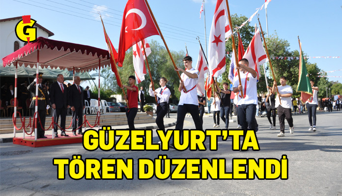 Güzelyurt’ta saat 09.30’da protokol sırasına göre çelenklerin konulmasıyla başlayan törende, bir dakikalık saygı duruşu ve İstiklal Marşı’nın okunmasının ardından bayraklar göndere çekildi.