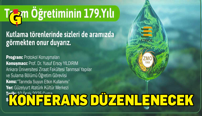 Ziraat Mühendisleri Odası (ZMO) Tarımsal Eğitim ve Öğretimin 179’uncu yıl dönümünü kutlamaları kapsamında cuma günü Güzelyurt Atatürk Kültür Merkezi’nde “Tarımda Suyun Etkin Kullanımı” konferansı düzenleniyor.