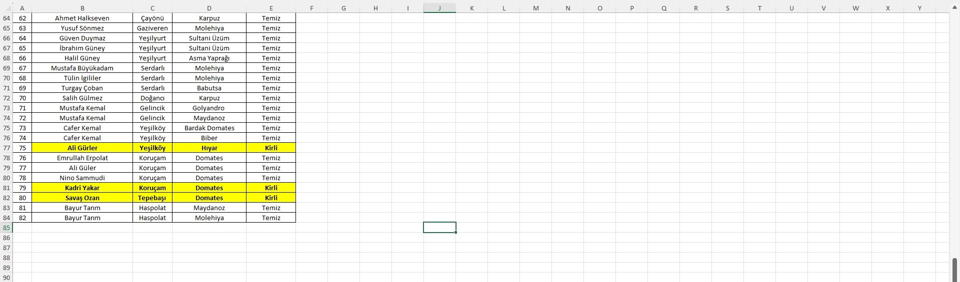 Mağusa sakini Mehmet Sepetçi’ye ait domateste ve Tepebaşı köyü sakini Savaş Ozan’a ait domateste limit üstü bitki koruma ürünü tespit edildiğinden dolayı ürünlerin hasadı bir sonraki laboratuvar analizine kadar durduruldu.