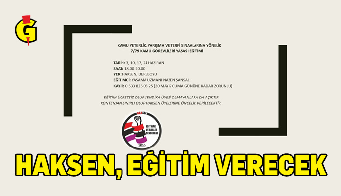 Eşit Hak ve Adalet Sendikası (HAKSEN), kamu yeterlik, yarışma ve terfi sınavlarına yönelik Kamu Görevlileri Yasası eğitimi verecek.
