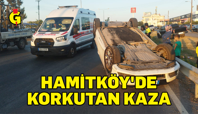 Hamitköy Trafik Işıkları yakınlarında, bu akşamüzeri bir kaza meydana geldi. Kaza nedeniyle bir araç tavanı üzerinde durdu.