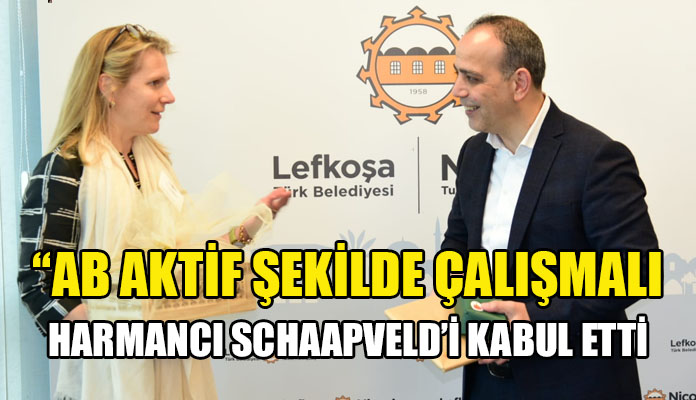 LTB Başkanı Harmancı Büyükelçi Schaapveld’a Kıbrıs konusu olmak üzere toplumlar arası görüşme süreci, Lefkoşa Rum Belediyesi ile ilişkiler, belediyenin hizmetleri, uluslararası çalışmaları ve LTB’nin Avrupa Birliği kaynaklı projeleri hakkında bilgi verdi.