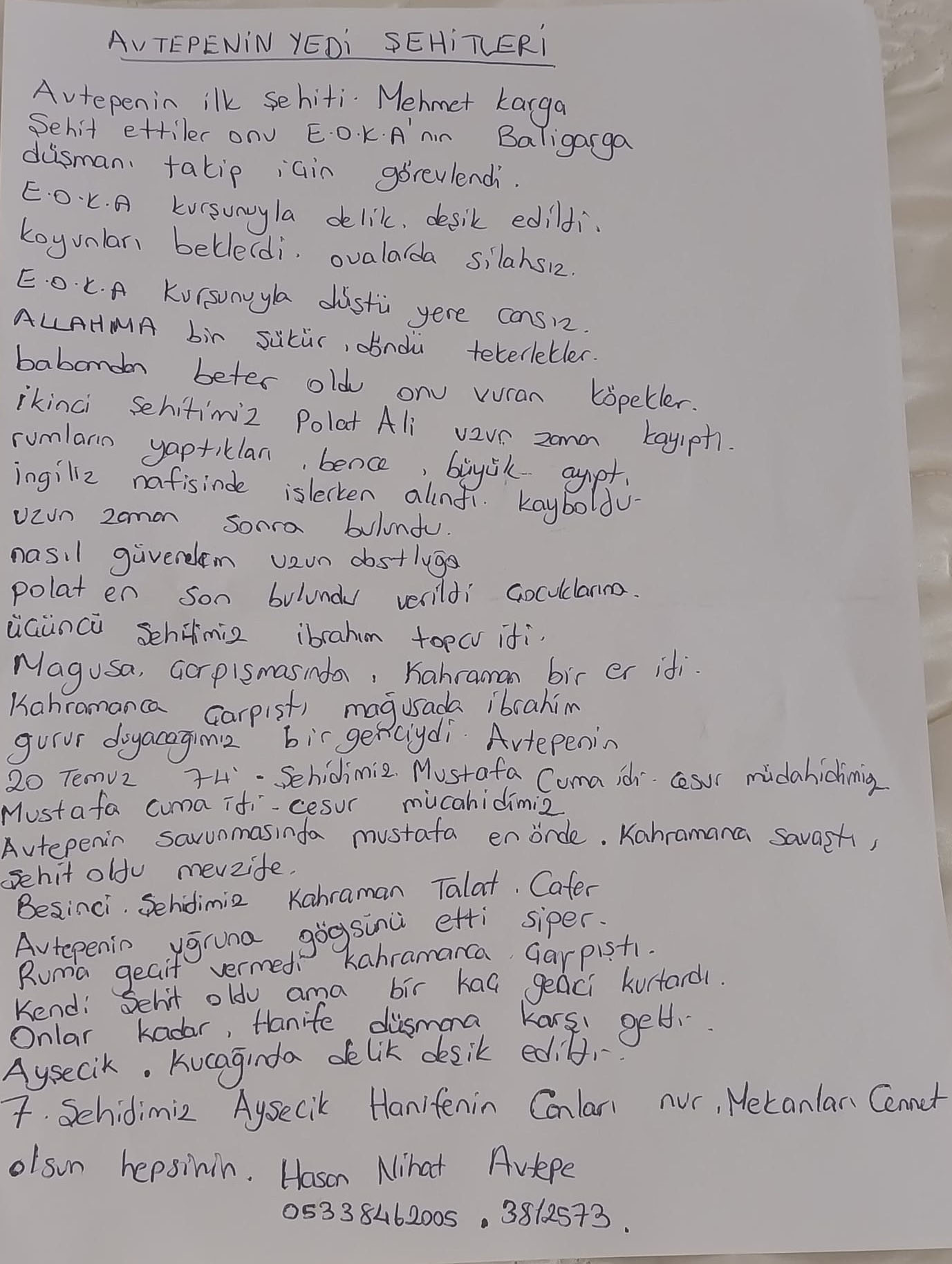 Nihat, 20 Temmuz 1974 yılında şehit düşen Avtepe şehitleri için yazdığı şiiri ile köylerindeki 7 şehitlerini bir kez daha andı.