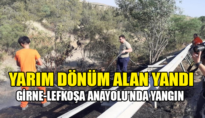 Girne – Lefkoşa anayolunun kuzey çevre yolu bağlantı kısmında, henüz tespit edilemeyen sebepten dolayı çıkan yangın sonucu yaklaşık yarım dönümlük alan içerisindeki kuru otlar ile akasya ağaçları yandı.