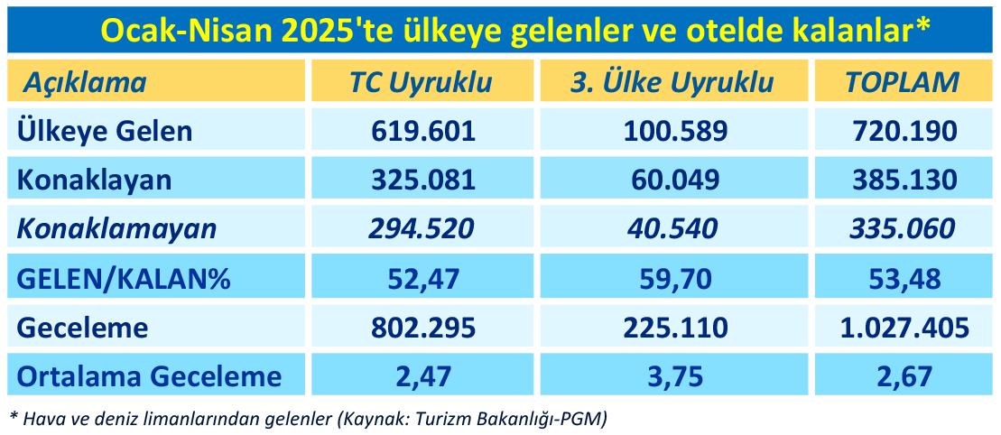 - ülkelerden gelenler otellerde ortalama 3.75 gece, tc uyruklular 2.5 gece kalıyor
