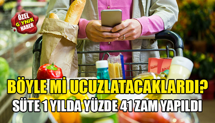 SÜTE 1 YILDA YÜZDE 41 ZAM… Başbakanlığa bağlı İstatistik Kurumu verilerine göre her evin vazgeçilmezi temel gıda maddelerinden ekmek bir yılda %34.77 oranında, kuzu eti pirzola %21.93 oranında, dana eti kıyma %24.51 oranında, hellim %18.67 oranında, temizlenmiş bütün tavuk %21.66 oranında, süt (uzun ömürlü) %41.34 oranında, su (damacana) %20.37 oranında ve yoğurt %10.38 oranında zamlandı.