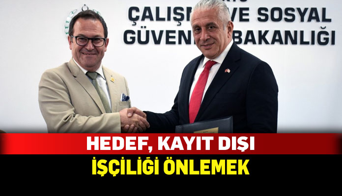 Çalışma ve Sosyal Güvenlik Bakanlığı ile Kıbrıs Türk Ticaret Odası arasında yabancı çalışma izin işlemleri ile ilgili iş birliği protokolü imzalandı. Protokole Çalışma ve Sosyal Güvenlik Bakanı Hasan Taçoy ve Kıbrıs Türk Ticaret Odası Başkanı Turgay Deniz imza koydu. KTTO’dan verilen bilgiye göre, iş birliği protokolü kapsamında Ticaret Odası, kendi üyelerinin yabancı uyruklu işçi istihdamına ilişkin çalışma izin işlemlerini Çalışma ve Sosyal Güvenlik Bakanlığı ile iş birliği içerisinde yürüterek üyelerine bir dizi hizmet sağlayacak. Söz konusu protokolle taraflar, genelde kayıt dışı işçiliği, özelde ise kayıtsız yabancı uyruklu işçi istihdamını önlemeyi, işgücü piyasasının düzen ve denetim altına almayı ve haksız rekabeti ortadan kaldırılmayı amaçlıyor.