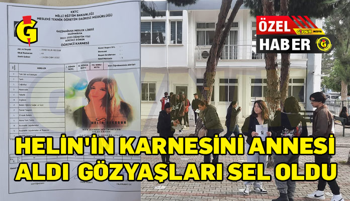 Hunharca bir cinayete kurban giden 16 yaşındaki Helin’in sırası bugün boştu. Mağusa Meslek Lisesinde okuyan Helin’in karnesini güçlükle ayakta duran annesi aldı. Gözü yaşlı anne kızının karnesini alırken gözyaşlarına hakim olamadı.