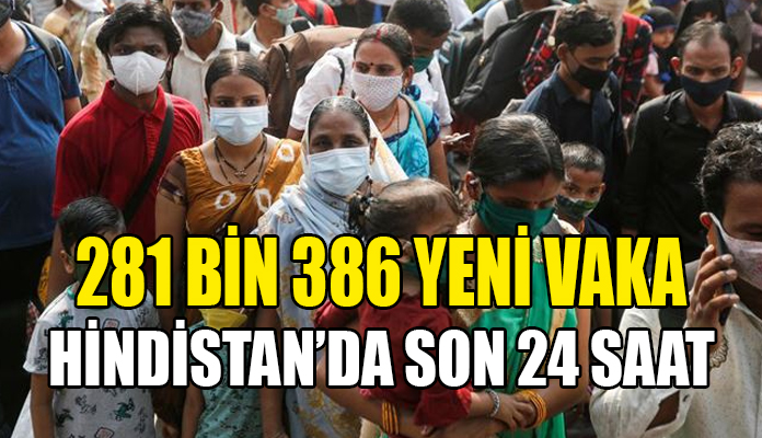 Hindistan Sağlık Bakanlığı’ndan yapılan açıklamaya göre, son 24 saatte 281 bin 386 yeni COVID-19 vakası tespit edildi, 4 bin 106 kişi virüs nedeniyle yaşamını yitirdi.