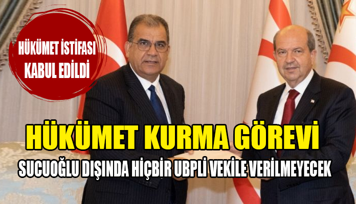 Gıynık Gazetesi’nin Cumhurbaşkanlığı’na yakın kaynaklardan elde ettiği bilgiye göre kısa bir süre önce Cumhurbaşkanlığı’nda Başbakan Faiz Sucuoğlu ile görüşen Cumhurbaşkanı Ersin Tatar, hükümetin istifasını kabul ettiğini Başbakan Faiz Sucuoğlu’na açıkladı. Elde edilen bilgiye göre Cumhurbaşkanı Ersin Tatar’ın hükümeti kurma görevini UBP Genel Başkanı Faiz Sucuoğlu dışında herhangi bir UBP’li milletvekiline verilmeyeceği de öğrenildi.